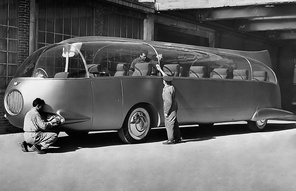 3. Американский ответ из той же середины 50-х. Трехэтажный автобус на базе GMC Greyhound Scenicruiser. Только эта штука перемещается до сих пор. Сочувствуем очевидцам.