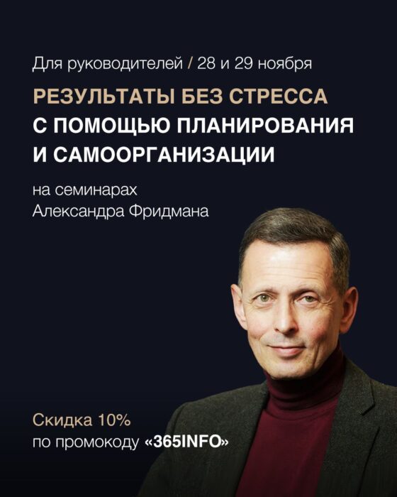 Как сообщили организаторы, 28 и 29 ноября Александр Фридман проведёт практические занятия для руководителей и предпринимателей, посвящённые планированию, приоритизации задач и развитию личной управленческой дисциплины. Цель программы — помочь менеджерам перейти от постоянного «тушения пожаров» к системной работе над стратегическими целями.